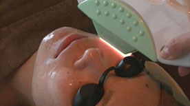 LEDの赤「コラーゲンアップ」青「ニキビ、毛穴改善」緑「シミそばかす」黄色「新陳代謝」光を選んで頂き、マッサージ器付きのベットに横になって寝てるだけで肌改善プルプルに!