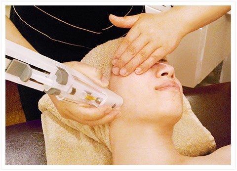 気になるしみを低周波で刺激しピンポイントでシミを排出します。滞っているしみの代謝を上げ、肌に負担をかけないように少しずつしみを排出していくエステです